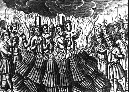 Until the abolition of the offence in 2008, blasphemy was committed in British law if there was published ‘any writing concerning God or Christ, the Christian religion, the Bible, or some sacred subject using words which are scurrilous, abusive or offensive, and which tend to vilify the Christian religion’. The origins of the law go back a millennium. After the Norman Conquest of 1066 two orders of courts were established. Church courts decided all ecclesiastical cases, under the guidance of canon law, which legislated on moral offences. The civil or king’s courts were concerned with offences against the person or property. In 1401, King Henry IV empowered bishops to arrest and imprison suspected heretics, including ‘all preachers of heresy, all school masters infected with heresy and all owners and writers of heretical books’. If a heretic refused to abjure, or if he later relapsed, he could be ‘handed over to the civil officers, to be taken to a high place before the people and there to be burnt, so that their punishment might strike fear into the hearts of others’.