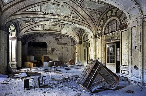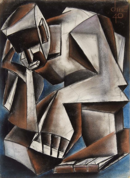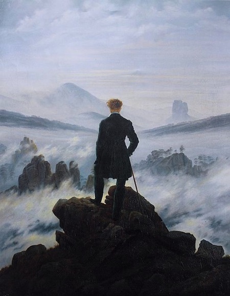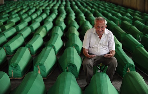 The images are, from top to bottom, of a Bosnian Muslim mourning among caskets at the Potocari Memorial Cemetery near Srebrenica; a portrait of Johann Gottfried Herder; Caspar David Friedrich’s 1818 painting Wanderer above the Sea of Fog; Joan Miro’s Bleu 1; the image of the burning book from the cover of the US edition of From Fatwa to Jihad; the Lee Plaza totel in Detroit, from a series of photos in Time magazine on ‘Detroit’s Beautiful, Horrible Decline’ taken by Yves Marchand and Romaine Meffre; Richard Dempsey’s 1940 charcoal and pastel drawing Untitled, from the Kelley collection of African American art; and Lucian Freud’s portrait of Isaiah Berlin.