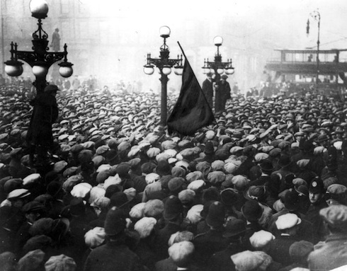 The images are, from top down, Multicultural II by Robert Daniels; striking workers in George Square, Glasgow, 1919; a poster in support of the Bradford 12; Garry Clarkson‘s photo the burning of The Satanic Verses in Bradford, 1989.