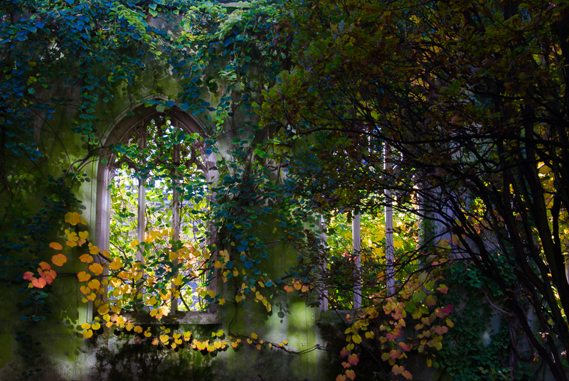 I stumbled across a little space that I never knew existed. St Dunstan in the East is a church originally built in the eleventh century, and rebuilt by Christopher Wren after it had been damaged in the Great Fire of London. It was bombed and almost destroyed during the Second World War. The church remains today in ruins but within and around it has been created a wild and wonderful garden. The remaining windows are draped with Virginia creeper and ornamental vine. Inside the roofless walls thrive such exotic plants as Moroccan broom, New Zealand flax and Japanese snowball. The effect is quite enchanting.