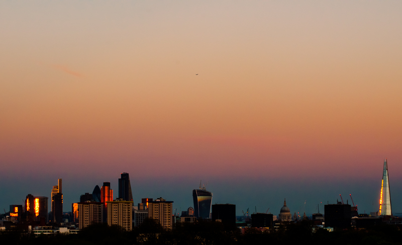 The London skyline at dusk. The first three are taken from Shooters Hill in southeast London, the last four from Primrose Hill in north London. For full-size versions see Light Infusion, 500px and Flickr.