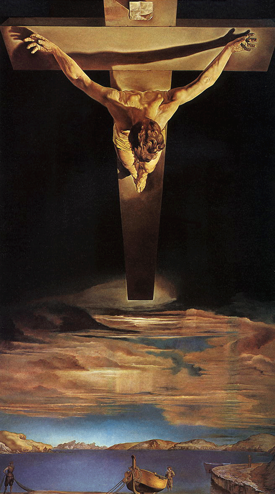 The paintings are, from top down, Marc Chagall’s Création du Monde; Salvador Dali’s ‘Christ of St John on the Cross’; Joseph Wright’s ‘A Philosopher lecturing at the Orrery’; Raphael’s ‘The School of Athens’; William Blake’s ‘The Ancient of Days’; Vermeer’s ‘The Astronomer’;Kazimir Malevich’s supremacist composition; ‘The Battle of Vertières’, an anonymous engraving of the Haitian revolution; Pablo Picasso’s ‘The Charnel House’; Henri Matisse’s ‘La Danse’; Eugène Delacrois’ ‘La Liberté guidant la people’.