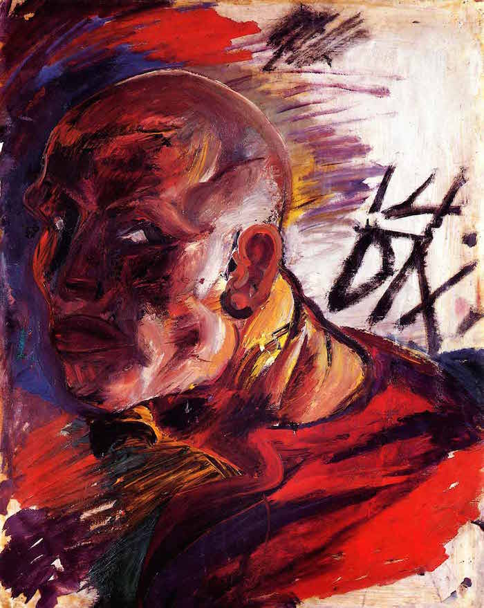 The paintings are ‘Self Portrait as a Soldier’ by Otto Dix and ‘Study for Returning to the Trenches’ by CRW Nevinson, both painted during the First World War.