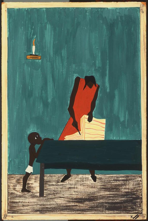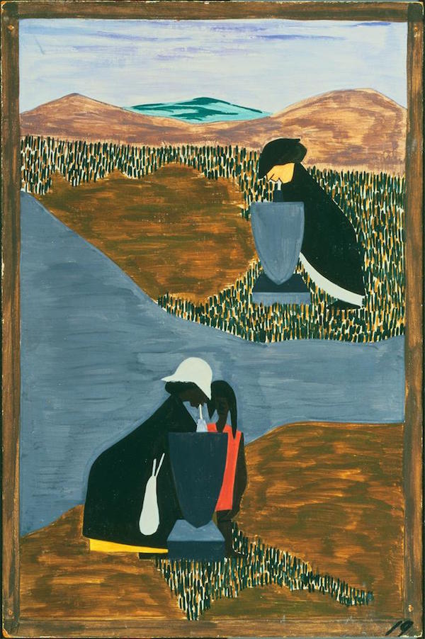 I wrote last month about the Great Migration and of Lawrence’s depiction of it. I am publishing on Pandaemonium all 60 paintings in the series. Panels 1-10, I published last month; here are panels 11-20, together with Lawrence’s captions to the paintings.