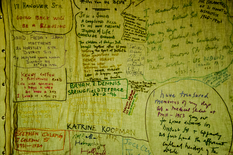 One of the churches left standing – the Central Methodist Mission Church – has now been turned into a museum, to tell the story of District Six and through it the story of apartheid. It is one of the most moving museums I have visited. On the floor of the museum is a giant street map of the old District Six on which former residents have written their names and some of their thoughts. The museum is built around the experiences and stories of the people who once lived in the area. Without ever sentimentalizing those experiences or making the stories mawkish, the museum gives a powerful sense both of what it was like to live in District Six and of the lived experience of apartheid. It is a monument as much to the robustness of the human spirit and of the spirit of resistance as it is to the horrors of apartheid.