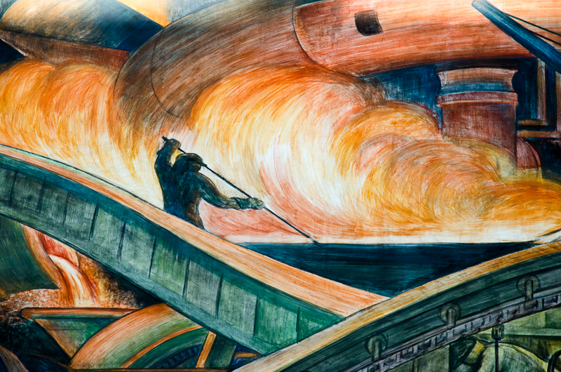 The murals were created in the depths of the Great Depression. The month before Rivera arrived in the police and Ford company guards attacked a Ford Hunger March, shooting dead five workers. Five days later, 60,000 workers followed the funeral process. March 1933, when the murals were first shown to the public, was the worst month for joblessness in the history of America.