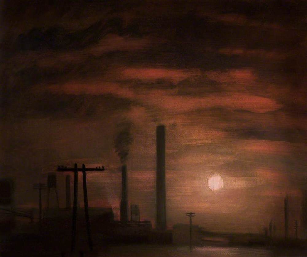 Born in Wigan in 1908, the son of millworkers (he himself worked in a tailor’s shop until forced to stop because of ill health), Major painted working class life, particularly in his home town, and dark brooding landscapes, in which humanity seemed forever cast against the elements. But he had a wide repertoire of themes, including portraiture and still life. What all his work possessed was an extraordinary intensity, making them almost expressionist in form, and a wonderful sense of texture. Being a working class painter, Major was often bracketed with fellow northerner LS Lowry, but, even though the two were friends, he dismissed the comparison: “I feel and express the opposite to Lowry. He expressed his own sadness and loneliness. I try to express nothing of myself – but the thing I am painting…” Major saw Lowry’s work as unable to give a sense of either the suffering or the humanity of working class communities. For Major, what interested him were “the morning mists, the light of yellow sun, the dark clouds, the pattern of smoke against grey sky. I saw the white sailing moon. I saw the dignity of workmen and the beauty and warmth of women. I saw God in every child.” And if that sounds a bit like William Blake, that’s because Major was greatly drawn to Blake’s work. “Painting”, he said “is my life and art my religion”.